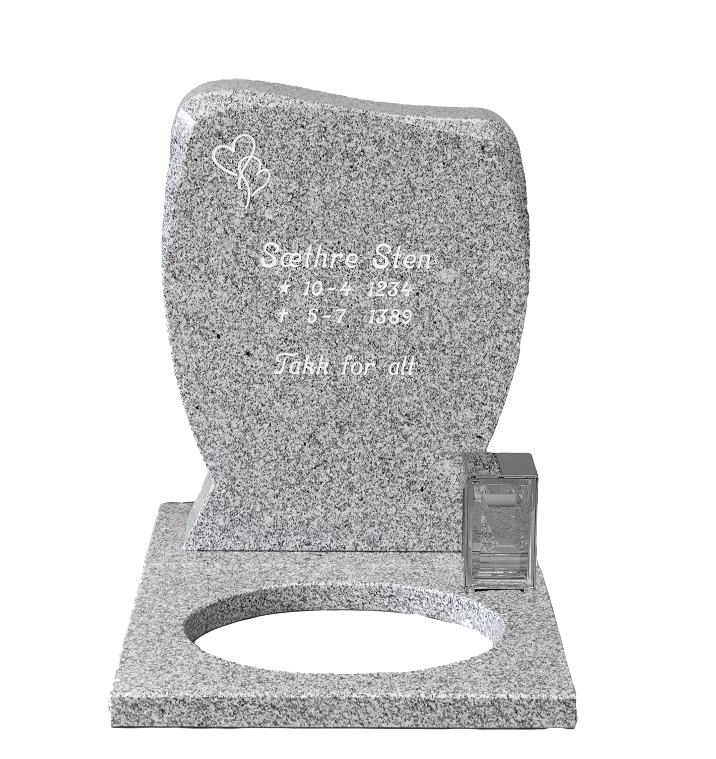 Innskripsjon, dekor, bedplate o.l. kommer i tillegg