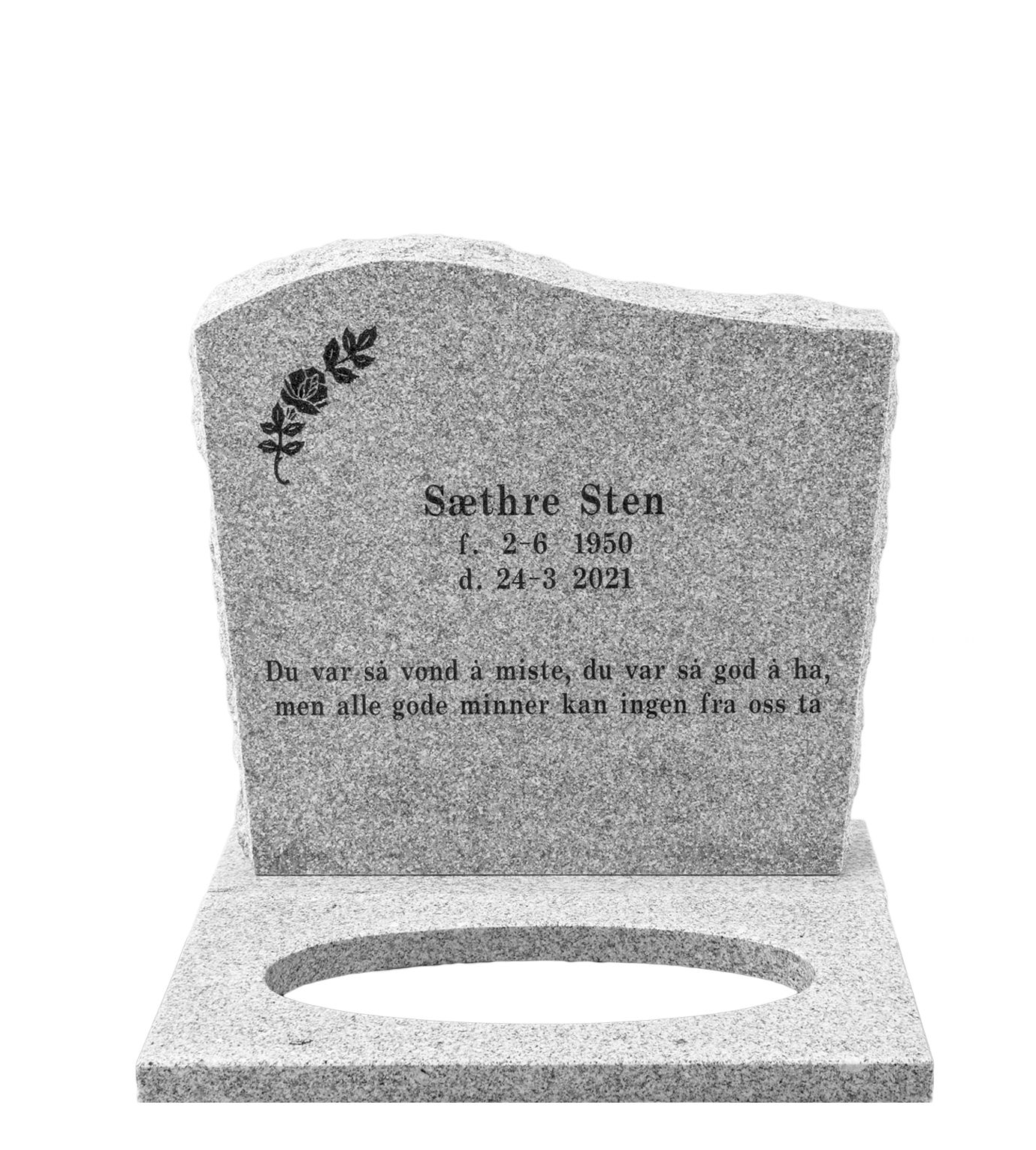 Ønsker du å se utforming og pris på gravsteinen? Nedenfor guider vi deg gjennom noen enkle spørsmål vedrørende valg av skrift, dekor og beliggenhet. Du velger mellom å lagre gravsteinen, sende forespørsel eller bestille.