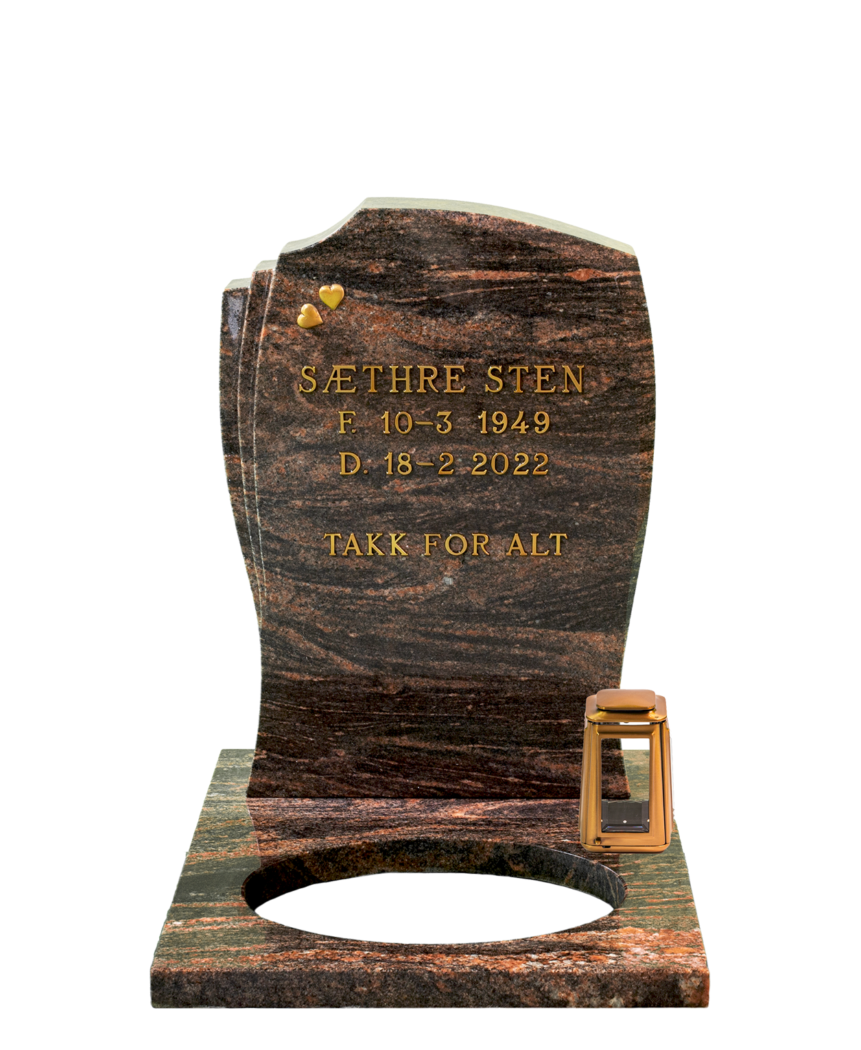 Ønsker du å se utforming og pris på gravsteinen? Nedenfor guider vi deg gjennom noen enkle spørsmål vedrørende valg av skrift, dekor og beliggenhet. Du velger mellom å lagre gravsteinen, sende forespørsel eller bestille.