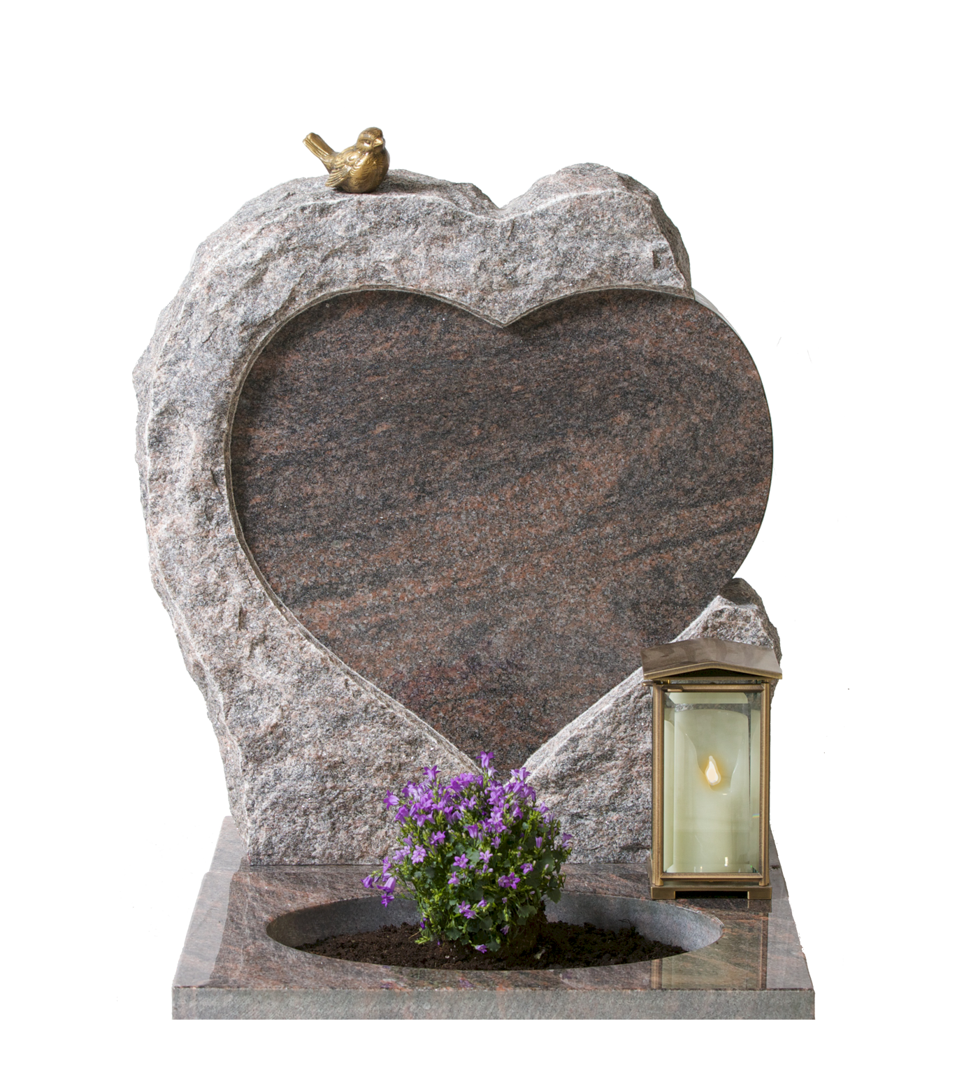 Polert hjerte med råhugget stein rundt. Laget i ett stykke.
