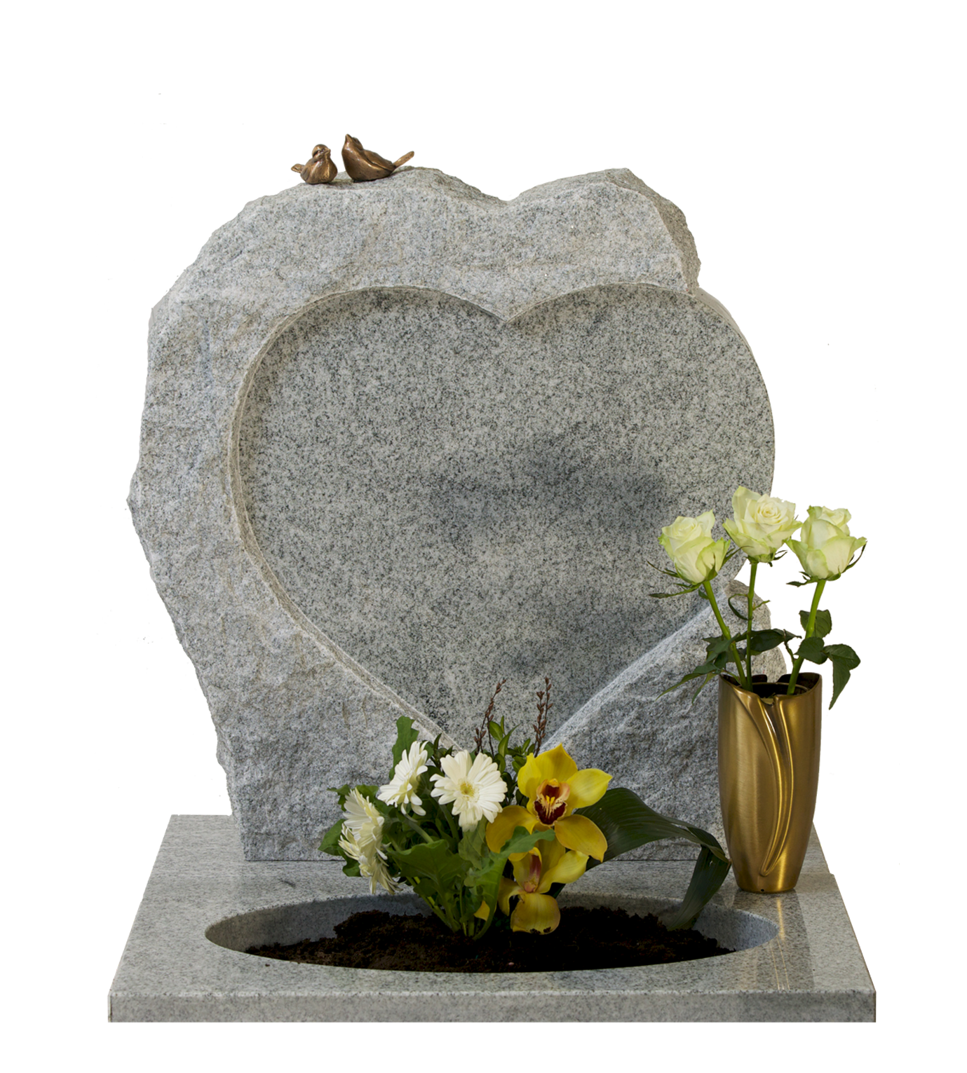 Polert hjerte med råhugget stein rundt. Laget i ett stykke.