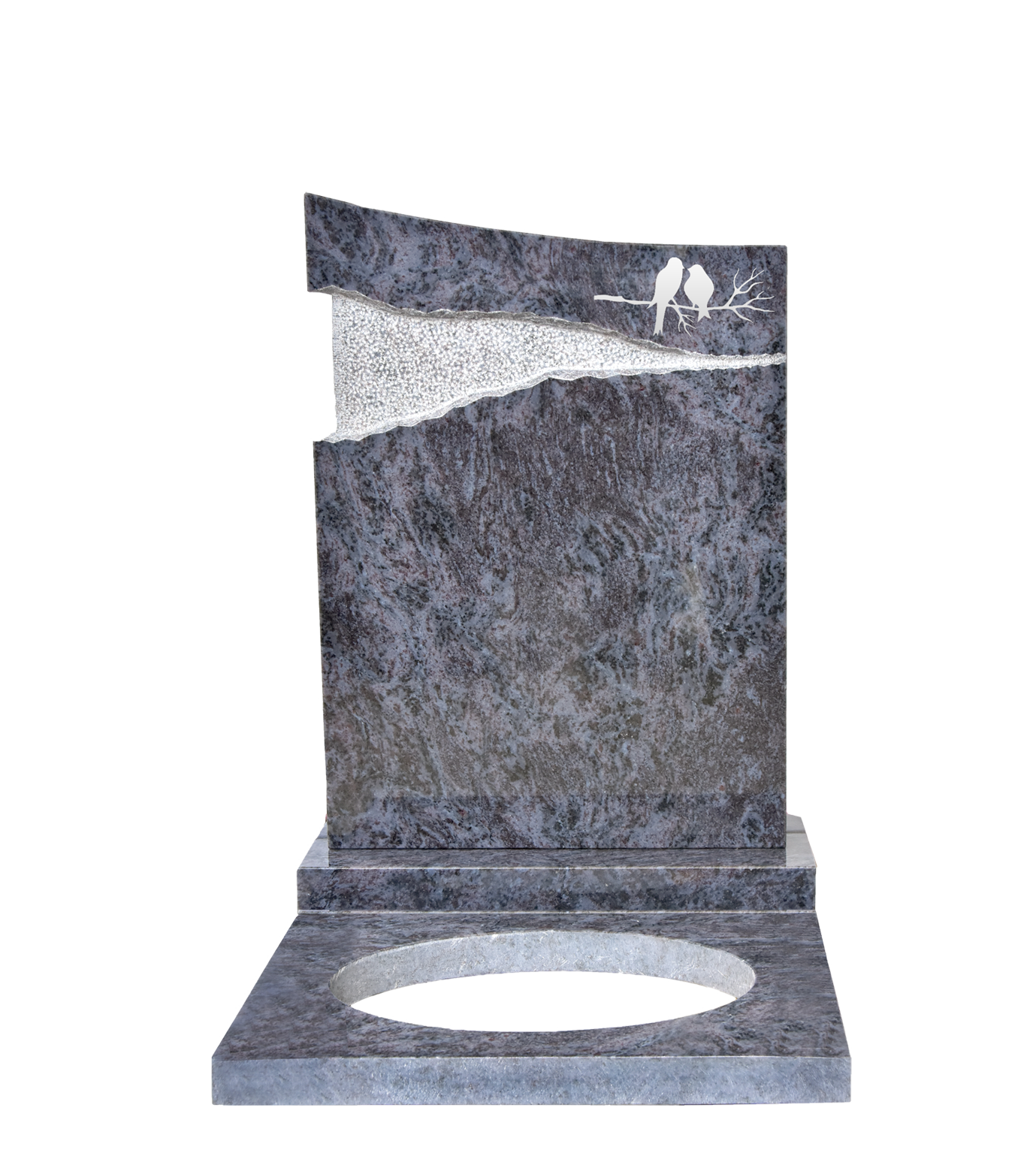 Design stein i blå gneis. Helpolert med prikkhugget felt.