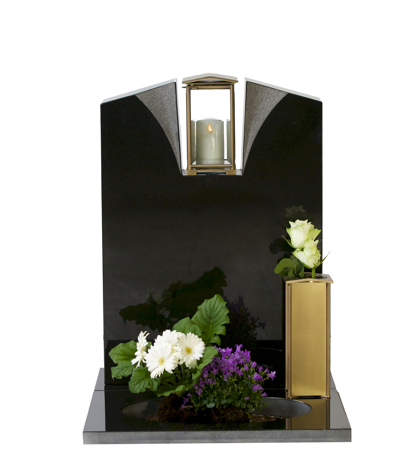 Helpolert stein med finhugget dekorfelt og innfelt lykt.