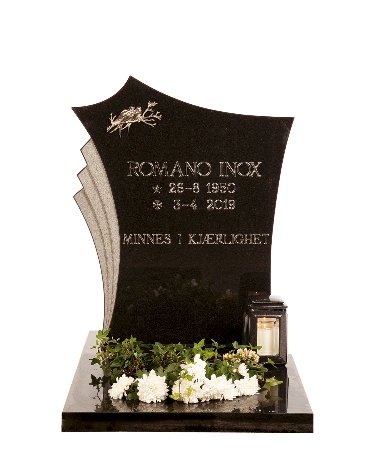 i granitt med 2 stålbolter. Leveres iht Gravferdsloven.