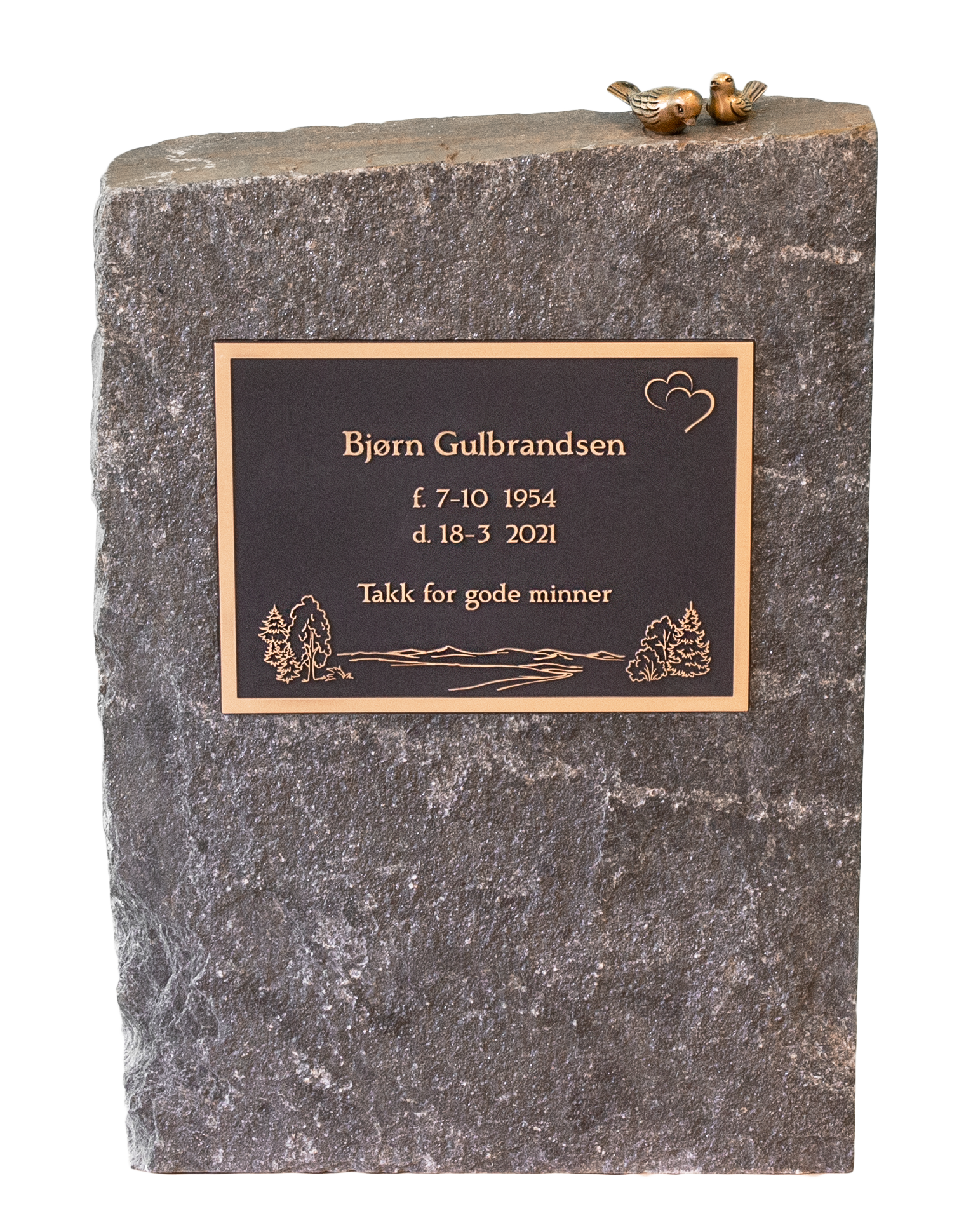 Vil du se utforming og pris? Svar på noen enkle spørsmål om skrift, dekor og beliggenhet, så guider vi deg gjennom valgene. Du velger å lagre designet, sende en forespørsel eller bestille direkte.